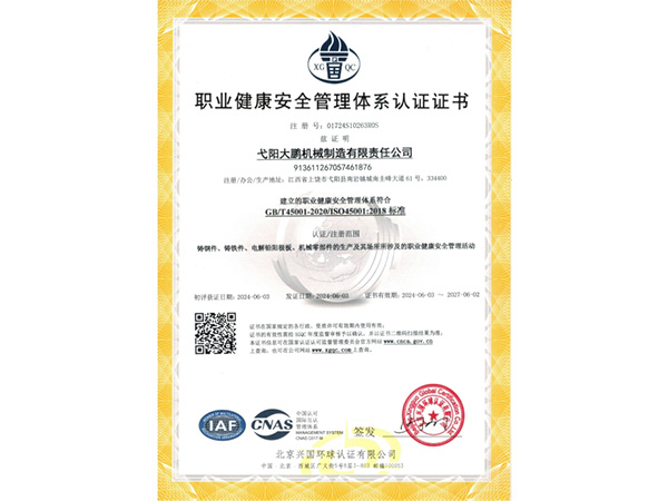 • 09-28弋陽大鵬機械制造有限責任公司成功取得規(guī)范